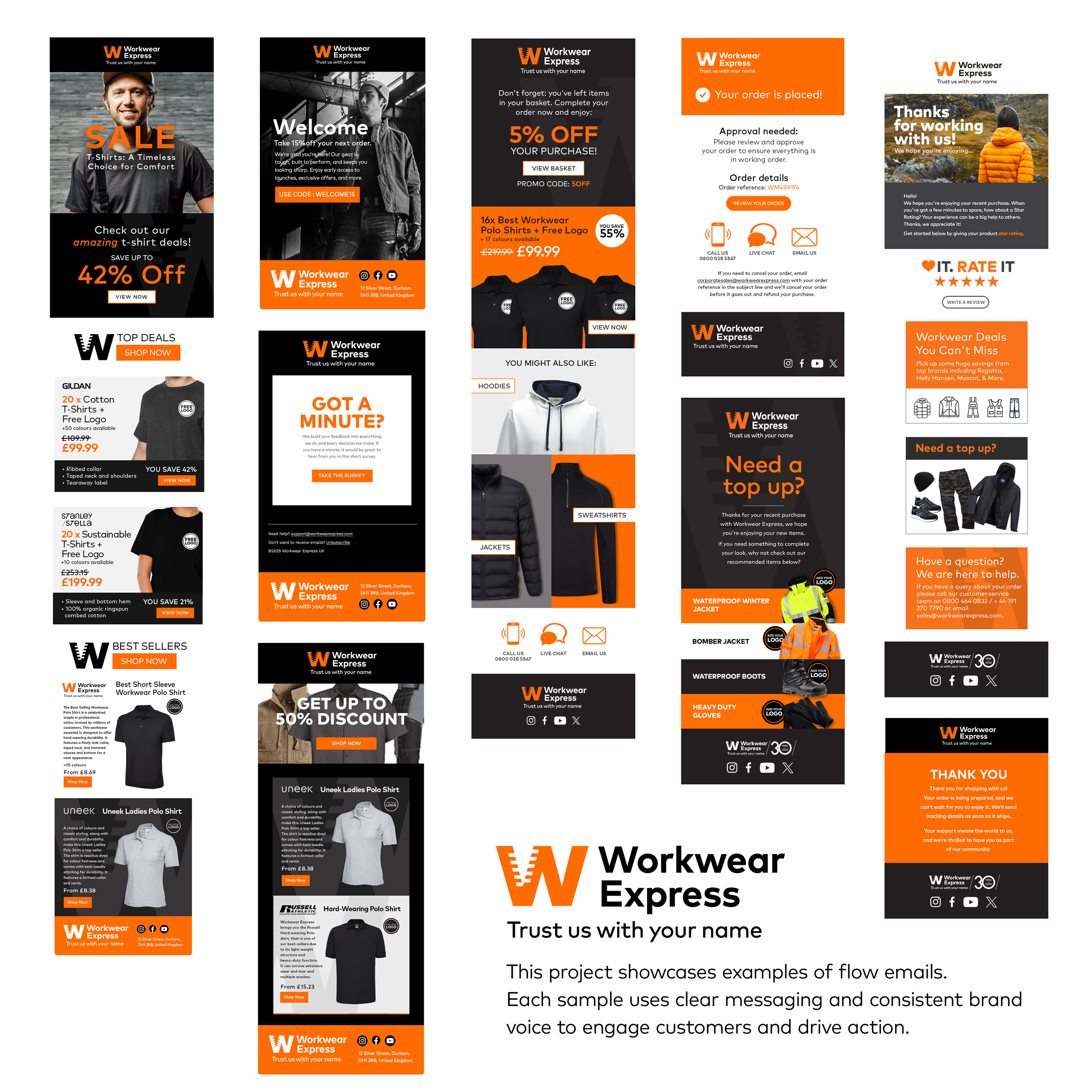 Our work included designing and producing catalog portfolios, developing targeted email marketing campaigns, and creating engaging website and video content. The goal was to showcase the range of products while enhancing brand visibility and driving customer engagement across multiple digital platforms. The result is a polished and consistent brand experience that reflects the quality and reliability Workwear Express UK is known for.